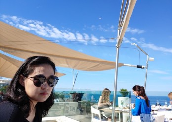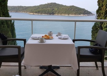 호텔정원에 있는 야외수영장을 바라보며 파란 아드리아 바다가 배경~~&n…